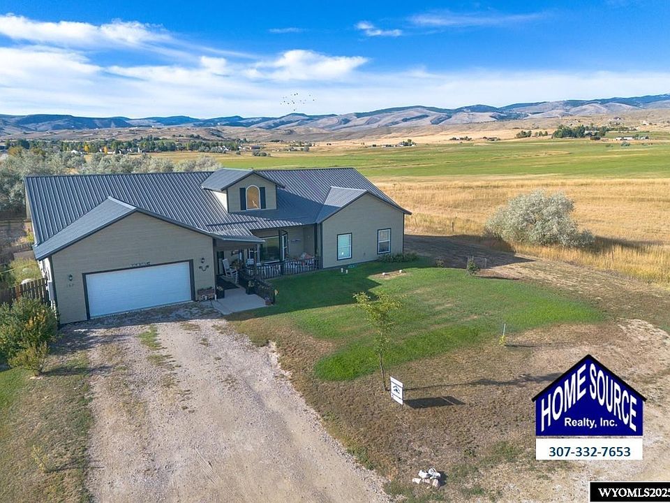 The hunter's house! This 2005 construction was built with impressive vaulted ceilings for your Wyoming trophies, ideal for displaying mounts, in a true grand room that also has views of the Wind River Mountains. Experience the best of both worlds from this town and country location, situated in the county, with end of the road privacy, but with city water and natural gas utilities, making the living easy, and peaceful. This comfortable 2005 ranch style home has main-level living, great natural light, large living spaces and has four bedrooms with a bonus room that can serve as a 5th bedroom. The spacious kitchen is positioned in the center of the home, open to the living spaces including a sizable dining room, making this a nice place to host a houseful. The master has an on-suite bathroom with spa tub, separate shower, double sink vanity, office nook and a large walk-in closet with additional loft storage. Enjoy the in-floor hot water gas heat throughout the home, including the heated garage floor! The 1/2 acre lot is lush with a country view, and a sweet spot to watch elk, deer and pheasants. Call today to see this custom home, and start enjoying solitude and space in vast Wyoming, with just a 5 minute drive into the charming town of Lander.