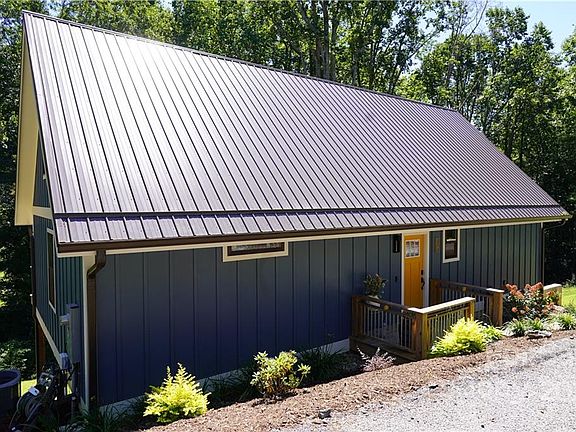 Rare, custom "Treehouse" for nature lovers looking for newer, contemporary home. Main living level features cathedral ceiling, split bedroom plan with 2 primary en suite bedrooms. A deck runs the length of the home and is accessible from both bedrooms and living room. Your view looks into the lush treetops and is perfect for enjoying the birds, squirrels and other wildlife. Access from the living room expands space for entertaining and all the glass doors help bring the feeling nature inside on the main living level. Very tasteful contemporary interior with open floor plan and lots of natural light. The well designed kitchen features a stunning walnut countertop. Large deck provides a wonderful space for outdoor living and entertaining. Move in ready! The wooded, low maintenance landscaping and yard make this home ideal for short term rentals, second or full time home. The lot rolls down hill to a small stream and more level area suitable for gazebo, recreation or play area.