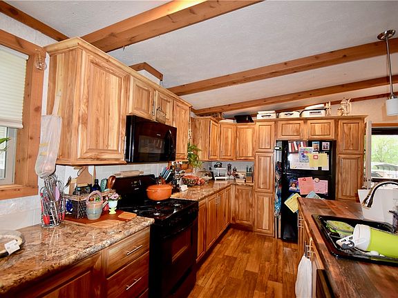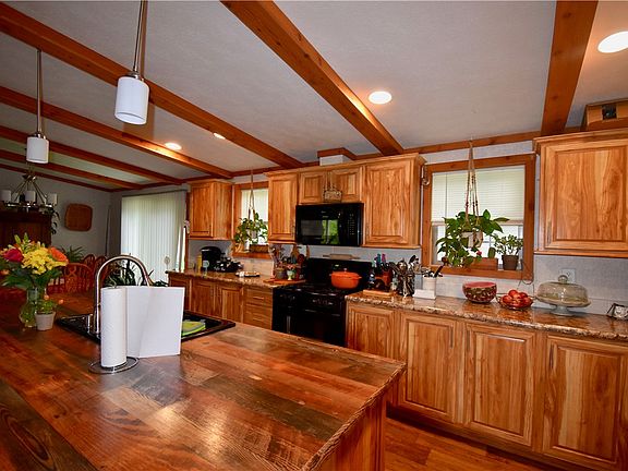 This is a double wide manufactured home in DEER PATH PARK. Built in 2019. Location is close to RT 28 and shopping. Wrap around porch and no steps inside or outside. A true one level living. The kitchen is a beauty and a chef dream. Country kitchen looks and all the amenities with counter and cabinet space. Built in bar/counter for breakfast, snack time or entertaining party spot. Large dining area attached and a sliding door to a side porch. Living room has an electric fireplace and 3 large windows for natural light. Hallway leads to a laundry room, full bath and 3 bedrooms. The owner's suite is spacious, and the owner's ensuite is ADA accessible. The ensuite has double sinks and a linen closet. The lot location is close to the rear of park, so traffic is minimal. House has central air, gas heat and all appliances. Schedule a tour today.