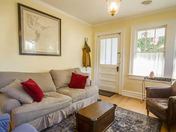 Lovely 1920's brick home, thoughtfully renovated while retaining original vintage charm. Complete kitchen renovation with a new GE dishwasher and Viking professional range, complimenting custom butcher block counter tops. The new deck adjacent to the kitchen is the perfect area to relax and entertain, with off street parking and a beautiful fenced yard. Numerous upgrades truly add to the livability of this home which has been completely rewired and had all of the plumbing replaced. Additional offstreet parking in the front and a large storage shed offer convenience and curb appeal. Original heart-of-pine floors + woodburning fireplace maintain the original character of the home which is walking distance to the public boat landing, park, and Terrace Theater. Not in a flood zone.