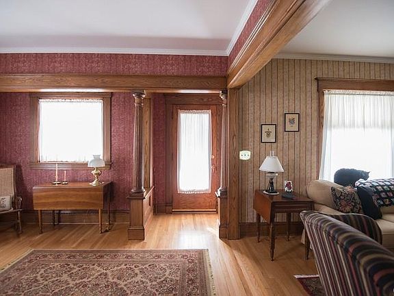 Charming colonial with gorgeous chestnut woodwork. Large living room with gas fireplace leads to spacious formal dining room. You'll love cooking in the bright & sunny kitchen with abundance of cupboards and plenty of counter space. Master bedroom features huge walk-in closet. Full sized attic for extra storage. Finished heated family room in basement, separate laundry room and exterior walkout to nice sized yard with 2 car detached garage. Many updates to this home. This is a must see!!