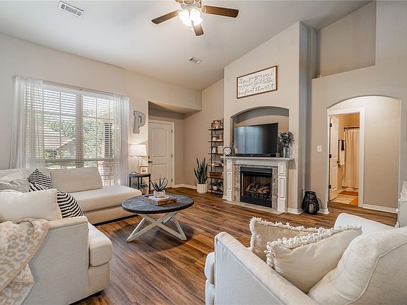 & some laminate flooring. Literally move in ready! LR w/FP, spacious eat-in kitchen w/ pantry, 3 bedrooms & 2 baths, split floor plan & a nice, covered patio. Fenced yard & professionally landscaped front flower beds. Don’t miss the opportunity to own this wonderful house & call it your HOME.