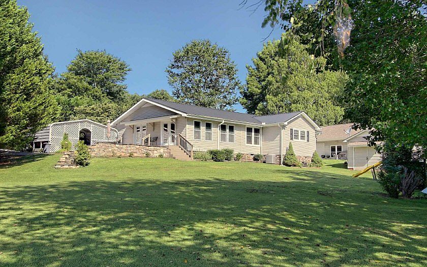 Georgia Mountain & Lake Front home with Dock. Spacious 3 bedroom 2.5 bath home with open floor plan with easy access, one level living on Lake Chatuge. Nice kitchen with lots of cabinets, huge great room, large patio with awesome Lake & Mountain Views. Carport, outbuilding, pond & large detached workshop/garage with a half bath. Don't miss out on this deal !