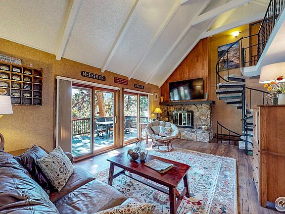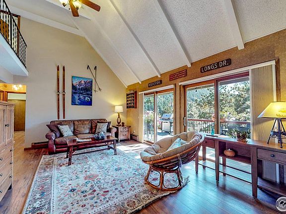 Mountain Contemporary 5 BR home with walk-out basement and fenced yard. Vaulted Great Rm with fireplace, double sliding doors to a huge deck for sweeping mtn views. Abundant natural light, updated eat-in kitchen. Master suite w/deck access and second bedroom complete the main level. Lower level features Family Rm w/fireplace, 3rd BR, bath and 2nd kitchen for a guest suite option. Quiet area, Workshop, New flooring, updated lighting & abundant storage. Don't miss the virtual tour.