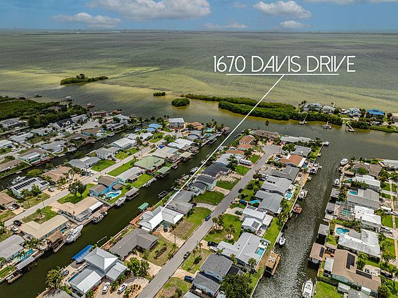 Motivated Seller. LOCATION! LOCATION! Direct access to Banana River. 75' mid-canal frontage with 57' dock. 22'X10' BOAT Bunks & Lift. Canal is approx 6'-8' draft. Walk through the double-front doors & SEE STRAIGHT THROUGH TO WATER & dock. This 1,800+ sq ft ranch style home was BUILT SOLID AS A ROCK. GREAT VIEW OF WATER from LARGE OPEN KITCHEN w/custom island & tons of storage. Vaulted ceilings in SUNROOM with FIREPLACE overlooking water. 3 bedroom/ 2 full bath. Garage is 25'W & 26'D & has work bench & sink outside. Master bedroom suite also overlooks canal/dock. TERRAZZO floor in living room. Wood in formal dining room. Tile throughout. QUIET NEIGHBORHOOD. This one's A DIMOND-IN-THE-ROUGH, but with some repairs & a little TLC, you'll have an EASY-LIVING, WATERFRONT HOME. Metal ROOF over shingles 2018. SEAWALL permit closed 2022. Water & electric believed to be at dock. Boat Lift parts are located in the back shed. You've GOT TO SEE this home from the inside! Call today for a private