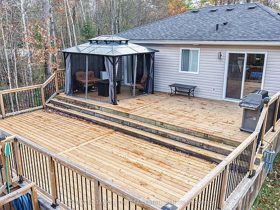 Discover the perfect blend of privacy and convenience with this beautifully maintained country home, just six minutes from the heart of Washago. Tucked away on nearly two serene acres, this spacious sun filled home offers the peace and quiet of rural living while keeping everyday amenities within easy reach. Designed for comfort and flexibility, the layout suits families of all ages and stages. Inside, you'll find four generous bedrooms (two up and two down), two full bathrooms, and bright, open-concept living spaces that flow seamlessly from the kitchen to the dining and living areas. The lower-level recreation room provides plenty of additional space for relaxing or entertaining. Pride of ownership shines throughout - with thoughtful updates including kitchen appliances, a newer pool liner and heater, updated main floor washroom and a mix of hardwood and ceramic tile flooring. The heated double garage, expansive updated decks, and inviting outdoor spaces add to the home's appeal. The treehouse and pool make this property both so much fun. Whether you're enjoying a quiet morning coffee surrounded by nature or heading just minutes into Washago for shops, dining, or the local beach or the casino for a show this home offers the best of both worlds - peaceful country living with all the conveniences close by.
