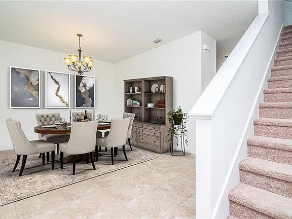 One or more photo(s) has been virtually staged. 2014 5 BED, 3.5 BATH HOME IN LONG LAKE RANCH OFFERS A FIRST FLOOR MASTER SUITE. The open concept kitchen situated at the back of the house opens out to a sizeable family room with plenty of room for entertaining. Both have tile floors and are adorned with three large windows and a sliding glass door which provides convenient access to the spacious back yard complete with a covered patio. The formal dining room sits at the front of the house while the master suite is accessible down a short hallway off the kitchen & boasts a sizable master bedroom with connected en suite bathroom with his/her sinks, garden tub, large shower, & a walk-in closet. The powder room also sits in this hallway conveniently accessible from the main living areas. At the top of the stairs you will find a spacious loft that is easily accessible from all four upstairs bedrooms providing the perfect spot for a game room or sitting area. Bedrooms 2 & 3 have been well designed with a jack & jill bath with private sinks for each room while the 4th & 5th bedrooms share a hall bath. Three of the four bedrooms upstairs have walk-in closets. Finishing off this perfectly laid out home is a beautifully landscaped front yard, NEW WATER HEATER 2019 & a plethora of community amenities including a pool & splash pad, dog park, tennis & basketball court, 40 acre lake with walking trail, community lake dock, & playground. Top rated schools nearby. Convenient to Suncoast Parkway, I-75, bike trails, shopping, dining & more.