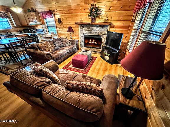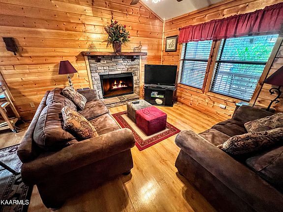 Come see this secluded 2 bed, 2 bath cabin on 1.75 acres. Raccoon's Rest is only a few minutes to Dollywood and all of the attractions of Pigeon Forge like the Island, Dolly's Pirate dinner theater and dozens more. You are also only a few minutes to the entrance to The Great Smoky Mountains National Park, the most visited park in the country. Situated at the end of a cul de sac and totally private back deck, you will enjoy that ''cabin in the woods'' felling that renters love. As you step inside you get that cozy log cabin feel with all the tongue and groove pine on the walls and a stone surround, gas log fireplace. The king size, vaulted ceiling, master suite on the main level includes a whirlpool tub and ceramic tiled shower. There is a bonus area on this level that is currently a covered, screened porch. With a little work, this could be turned into extra living space for a game room or sleeping quarters. Downstairs is a bedroom, full bath and game room with pool table. Also on this level is a private screened porch with a large 4 person hot tub. The large utility room houses a full size washer and dryer. Comcast cable provides for high speed internet. From the wooded back deck, you cannot see another soul.