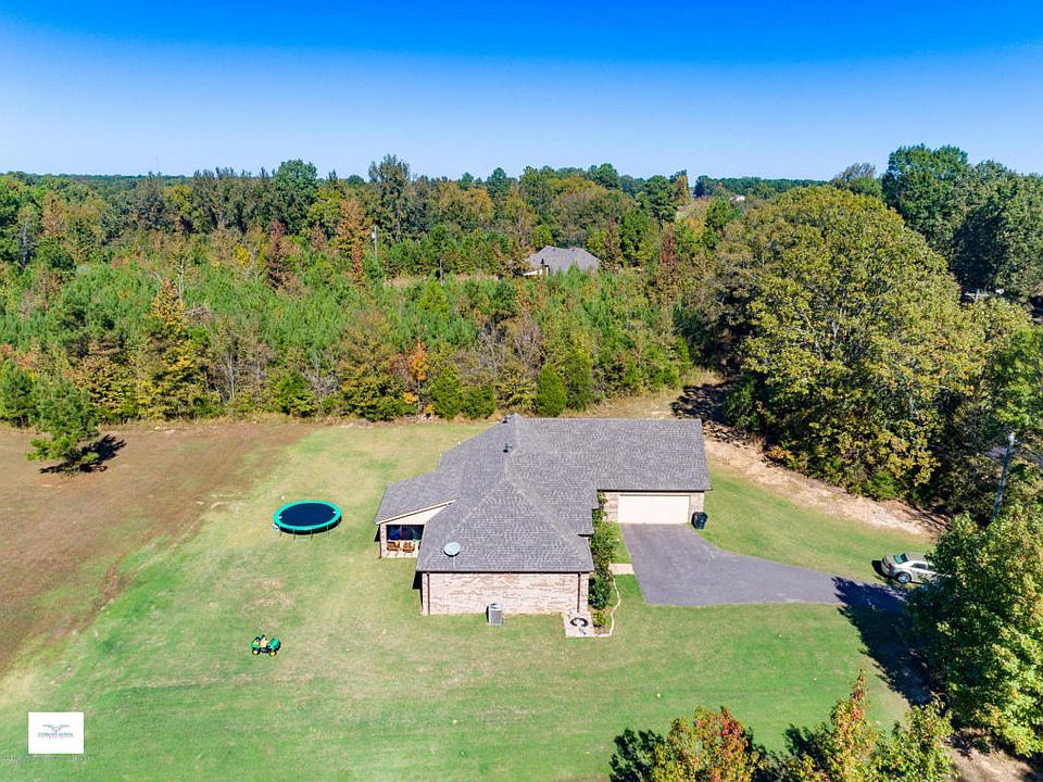 This house is better than new. Wonderful open floor plan and split bedroom. high ceiling and gas fireplace in LR. Large Master bedroom with salon bath. Custom Cabinets in kitchen. Covered Patio and on 3.6 acres. Large unfinished area upstairs.