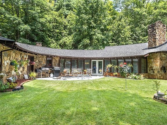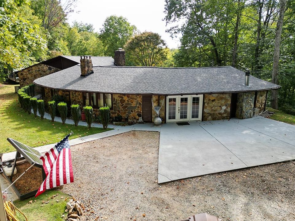 Welcome to your private retreat nestled on almost 50 acres of natural splendor with a CREEK running through it! Step off the beaten path as a gravel road leads you through the woods to your unique, one of a kind home that compares to no other! Lots of stone inside and out. Large windows and French doors allow for natural light inside. Entertain in your Great Room with a wood burning stove or in your Family Room with a 2nd wood stove. Your kitchen has lots of built in cabinetry, SS and a gas stove. Down the hall is your laundry room/half bath, plus a Bonus Room that makes for a great office, hobby room, or third bedroom. Your Master Ensuite is spacious with a tile shower. Additional guest bedroom and bath, also has a tile shower. French door access leads from your Great Room to your backyard patio for BBQ's with friends and family. A detached double carport, barn and an additional outbuilding that host a workshop for the handyman. The house has a BRAND NEW ROOF and has been freshly painted. Beautiful unrestricted, rolling acres gives you privacy and tranquility! The perfect place to get away from it all.
