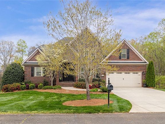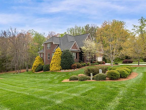 Beautiful Home in Pfafftown. Low Forsyth county taxes and in the highly desirable Regan School district. The home sits on an oversized lot with a small stream and backs up to woods. The yard has been beautifully landscaped with azaleas, hydrangeas, roses and many other blooming plants. A sprinkler system was recently added to keep the yard lush from spring to fall. Inside you will find a two story living room with a floor to ceiling stone fireplace. With the Primary bedroom and the garage on the main level, there is no need for stairs. Unless you want to retreat to the bar and billiard room for some fun with friends.