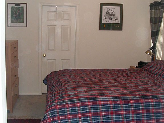 Downstairs: Kitchen, 1/2 bath, dining area, living room, pantry & 2 closets. Upstairs: Master, medium and small bedrooms with closets and hall full bath (tub w/shower) upstairs. Valuted master bedroom with walk-in closet & master bathroom. New roof 2010 & new exterior paint 2011.