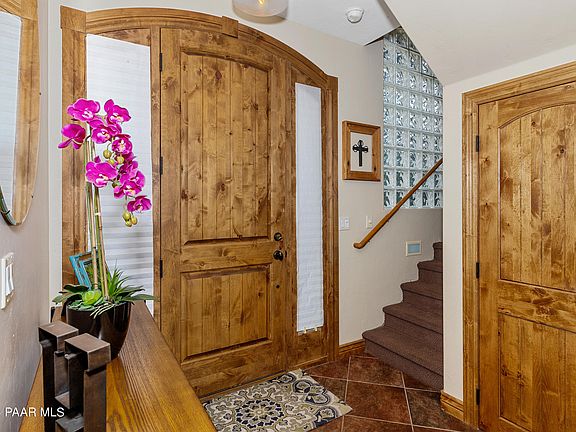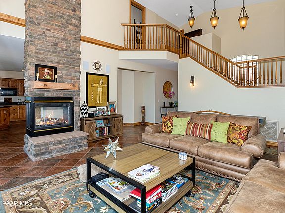 HUGE price drop on this breathtaking, FULLY-FURNISHED mountain retreat nestled on a private lot at the end of a serene cul-de-sac, less than 3 miles from the heart of downtown Prescott. This exquisite 4-bedroom, 3.5-bathroom home offers 1.38 acres of forever views amidst towering pines and backing up to state land. As you step inside, you're greeted by an expansive living area with tons of natural light, thanks to the vaulted ceilings and a stunning wall of windows. The floor-to-ceiling rock fireplace adds a touch of rustic elegance, creating the perfect backdrop for cozy evenings. The spacious kitchen has granite countertops, custom wood cabinetry, and double ovens - ideal for entertaining or preparing gourmet meals. The covered back deck invites you to relax CONTINUED.