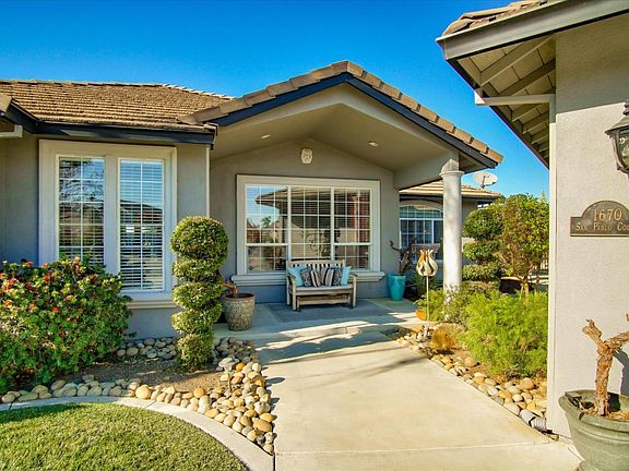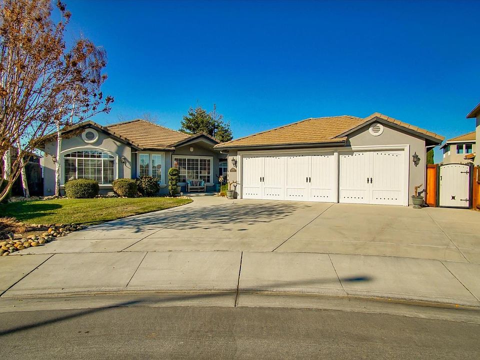 Hollister Home! The beautiful entryway opens to the thoughtfully designed open concept floor plan which includes separate living & dining rooms. The gourmet kitchen opens to the great room and features seating for 6 at the counter! Granite counters, double ovens, gas cooktop & great storage make this home very desirable! Custom features include wide baseboards, crown molding, coffered ceilings and more! There is leased Tesla solar reducing overall power costs. The permitted studio would be great for extended family or to rent - it is separate from the home & features a full bathroom & 220v outlet for stove. The private backyard is open and features fruit trees and shed and room for a pool, Great cul-de-sac location near shopping, restaurants, schools & great proximity to commuter routes. Please walk through the home with the 360 Tour before making an appointment to keep our elderly resident safe.