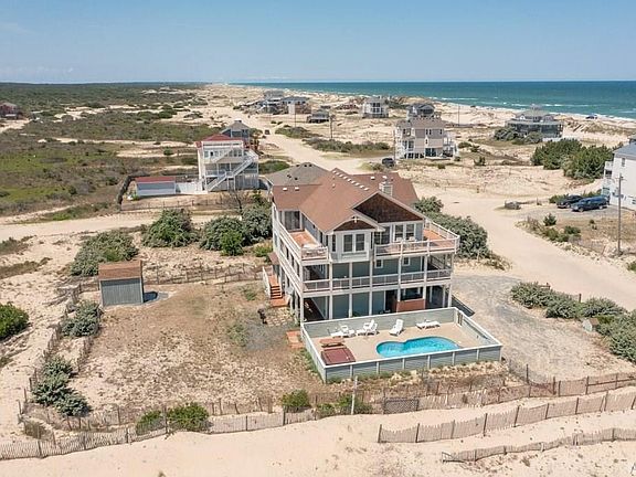 Luxury beach living w/stunning ocean & sound views. Located on the 4X4 Beaches of Corolla. Custom home, open flr plan, high ceilings, 3 levels of living space, and a large Theatre Rm. Each BR has private bath, ample closet space & balconies. Custom area built to add elevator, if desired. Private pool and backyard, short walk to the beach. Great for everyday living, 2nd home OR continue as an investment/rental property. FLOOD ZONE X-No flood insurance req'd! RENTAL INCOME 2022 $85,918; 2021 $76,127; 2020 $68,842; 2019 $71,760. Typically rented from the end of April-Sept