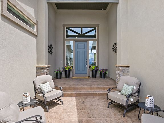 Former Vantage Model in Sanctuary Point boasts every upgrade imaginable and is accented with architectural touches throughout! This exquisite ranch style home sits on nearly a 1/3 of an acre lot that has been beautifully landscaped to include a water feature and has picturesque views of Pike Peak from the front porch. The main level has hardwood floors, 13ft beamed ceilings, a linear fireplace, a stunning gourmet kitchen with gas range, breakfast bar, quartz countertops, stainless steel appliances and huge walk-in pantry concealed within the kitchen cabinets. The main level master has a custom shiplap ceiling and large walk-in closet with built-ins. The spa like master bathroom has separate vanities with undermounted lighting and a very large walk-in shower with dual temperature controls. The 2nd bedroom on the main level has hardwood floors, wainscoting and is one of 4 en-suite bedrooms! The main level also has a mudroom off of the garage, laundry room w/ cabinets and a dining room off the kitchen. The fully finished basement has a custom wet bar and wine tasting room (5th bedroom en-suite). The basement family room has a custom entertainment area with undermounted lighting, pool table area and 2 additional bedrooms one of which has an attached bathroom. Additional amenities include custom tile in all bathrooms, quartz countertops throughout, multiple barn doors, undermount lighted shelving, shiplap accents, coffered ceilings, built-ins, 8ft doors on the main level, covered back patio, epoxy floors in the garage and central A/C! Sanctuary Point has a community trail system that connects to Fox Run Regional Park and playground! Conveniently located with quick access to I-25 for an easy commute to Colorado Springs and Denver, close to shopping, schools, and the Air Force Academy. This one of a kind home is truly a must see!