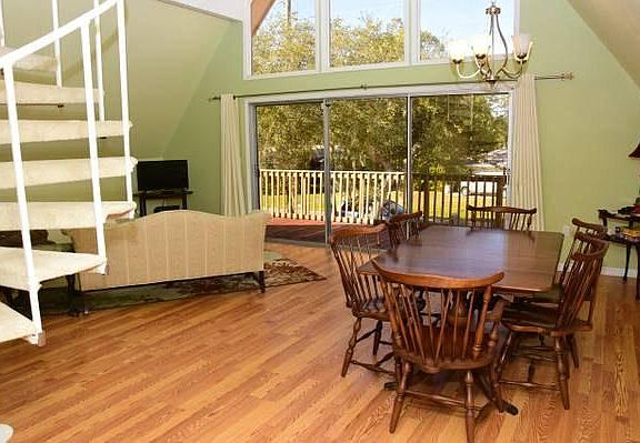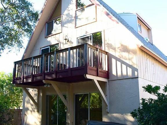 Captivating, renovated unique Chalet featuring 3 bedrooms, 3 baths. Great space, Private and quiet. Shady mature trees in back yard. "A" frame structure with 530 sq. ft. Partial wrap around deck on second floor for outdoor enjoyment and a Fenced backyard to keep pets in. Beautifully updated interior, including new stainless IKEA kitchen, baths, flooring, textured walls, light fixtures, brand new roof. Appointed with some antique furniture. Spiral stairs lead to 3rd floor private master bedroom, including a full bath w/bonus room either as a nursery or additional bed room or just to relax and watch the sun set. It also has a fenced Backyard to keep pets in Great open sunny spaces,inside and out, Large wrap around deck Awesome Location, Pet friendly and quiet neighborhood very close to the bay. Fantastically located just 10 min. to Siesta Key & 5 min. to Sarasota Square Mall, Kohl's, Costco, AMC theaters, and multicultural restaurants. Take an Evening Stroll along Private Marina and watch the sun set on adjoining Dunmore drive. Walk passed my neighbors home right into Wharf Road Park, w/boat launch, Picnic bench & dock leading to the inter-costal waterway. This is the Launch point for the Neville Marine Preserve Paddling Trail. Bring your own Kayaks or Inflatable boat and enjoy Little Sarasota bay every day from this convenient location. RV Parking Security System Skylights Mature shady trees Patio Porch Vaulted Ceiling avail 4/1 call Larry 941-320-7417