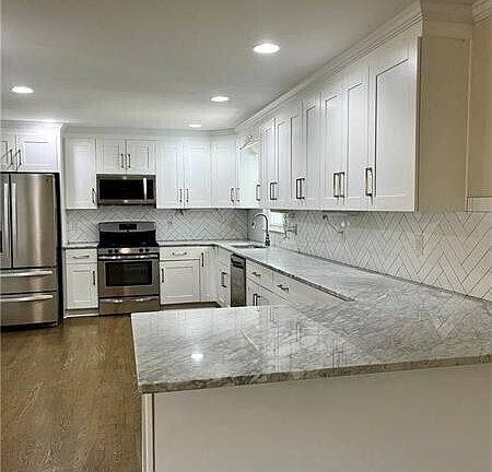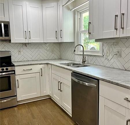 FULLY RENOVATED & MOVE-IN READY! Located in the established neighborhood of Benson Heights. Just 2 miles to I75! Large lots and peaceful streets. This home offers 4 bedrooms & 2 full bathrooms. **One bedroom is oversized and perfect for playroom, in-home office, workout room, craft room! Full basement for extra storage space. Super large, white kitchen has tons of cabinet and counter space and is open to the family room. The family room is PERFECT for oversized furniture~ so much room for everything!! The owner's suite offers a walk in closet and large, tiled shower. NO carpet anywhere! Neutral paint throughout! Large, level lot with landscaping and beautiful curb appeal. Covered front porch & back deck perfect for grilling. Washer & Dryer included. Dogs on case-by-case. $350 non-refundable pet deposit. Close to: KSU, Braves Stadium, I75, I285, Downtown Marietta, and easy access to downtown ATL. Perfect opportunity for discriminating tenant. Copyright Georgia MLS. All rights reserved. Information is deemed reliable but not guaranteed.