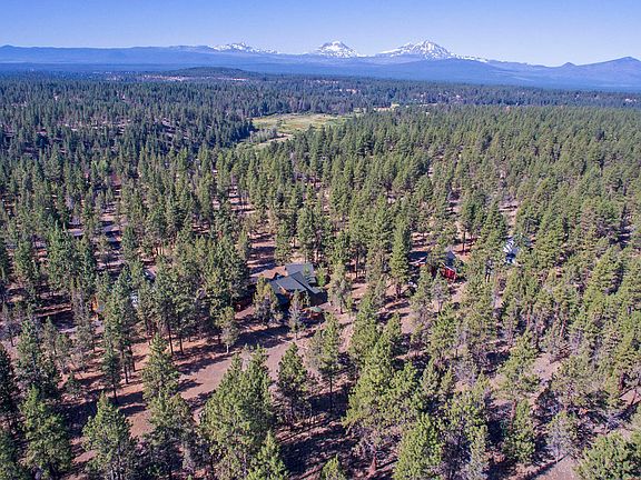 Escape to your own private retreat in the woods! Located in Junipine Acres, one of Sisters' most coveted rural communities, this charming 10-acre horse property boasts a gorgeous log home that is move-in-ready with most furnishings available for purchase. The main-floor great room features new wood flooring and access to the covered backyard patio, backyard gazebo, and fire pit. The master bedroom on the main level has its own private outdoor patio and hot tub access. Upstairs has all new carpeting, a large family room, three more bedrooms plus a second full bath. In addition to the main home, the detached two-car garage has an upstairs bonus room with a full bath and private entrance. The Barn/RV garage has two stalls, a tack room, a workshop area, a large second-level studio/office, storage rooms, and two fenced paddocks. Bonus perks: your own private park with mountain views, plus nearby access to the gated neighborhood park and picnic area, which winds along Whychus Creek.