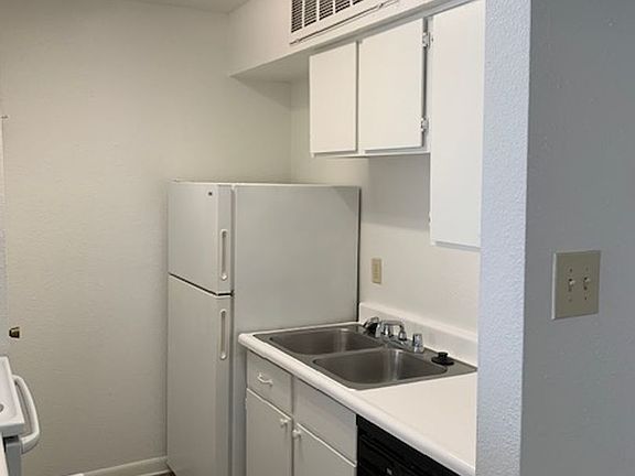 One bedroom and one bathroom apartment with privacy patio off of living room. Large living room space and full-size washer/dryer connections.