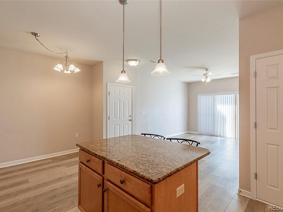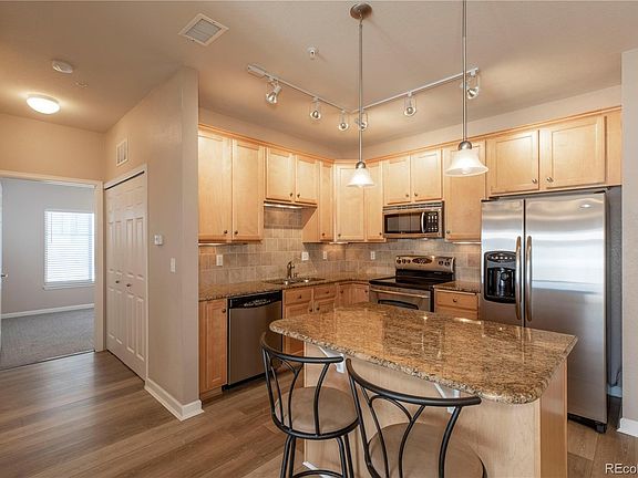 Rare ground floor condo in Stonegate Park Guell! This welcoming 1 bed, 1 bath condo has an open floor plan throughout the living spaces, bright natural light, and a direct access attached garage. No stairs or steps! The well-designed kitchen has stainless steel appliances, granite counter-tops, beautiful maple cabinets, and an island with bar seating. There is also a dining area and spacious family room with a fireplace and built-in entertainment center. Working from home? The office nook is a valuable addition to this space. The bedroom has a large walk-in closet, new carpet, paint, and window coverings. The bathroom has a beautiful walk-in shower that is a must see! Enjoy a peaceful morning on the wide-covered porch that faces the park or head over to the community pool, hot tub, and fire pit. There is also additional private parking on the driveway into the garage. This prime Parker neighborhood is located close to DTC, DIA, and has easy access to trails, E470, Park Meadows Mall, restaurants, shopping, and much more! You don't want to miss this amazing opportunity! WELCOME HOME!