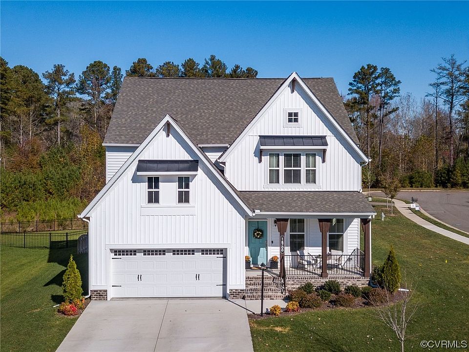Only a relocation makes this 2 YR old MODERN CRAFTSMAN home available! From it's CUL-D-SAC location, STYLISH exterior/interior, and highly ranked SCHOOLS (Moseley ES/Tomahawk Creek MS/Cosby HS) this Foxcreek stunner is sure to please. 5 Bedrooms (w/ a full GUEST SUITE & bath on the MAIN FLOOR this house lives large while feeling cozy, with a space for everyone! From the foyer, you are greeted by a private OFFICE w/ double doors, leading through to the OPEN CONCEPT kitchen, living & sunny MORNING ROOM. Modern grey/brown kitchen, updated lighting, pantry, gas range & fireplace are just a few of the features this home has to offer. Walk out to the deck & enjoy your FENCED, flat yard w/ some stunning WOODED views. Passing the guest suite, up the stairs are 4 bedrooms including the primary suite, featuring trey ceilings, a large ROMAN SHOWER & 2 large walk in closets! Spacious closets & bedrooms, another full bath, laundry room & updated lighting complete the 2nd floor. Residents enjoy indoor/outdoor pools, a gym, tennis courts & a clubhouse. Walkable to splash pad & playground w/ fun neighborhood happenings, you'll fit right in to this perfectly sized neighborhood in a prime location!