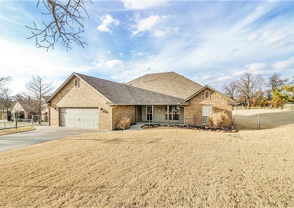 THIS AMAZING CHOCTAW HOME ON 1 ACRE WITH ELECTRIC GATED ENTRY, AWESOME LANDSCAPING AND GOOD SIZED WORKSHOPS IS JUST WAITING FOR YOU!!! Location is also pretty amazing with it being near the new KICKAPOO TURNPIKE, I-240/I-40, TINKER AIR FORCE BASE, BOEING and so much more. The floor plan is perfect with a good sized front living area open to the dining and kitchen area ~ the 2ND LIVING AREA is huge with seating area and enough space for your toys and is next to the 4TH BEDROOM with lots of space. This area also has lots of windows which look out to the beautiful acreage. The other 3 bedrooms are also split with the master bed and bath on one side and the other 2 and full bathroom on the other side making for a very versatile plan. Outside you will find an awesome 34X30 WORKSHOP that has electric ~ FULL SPRINKLER SYSTEM ~ a chicken coup house/area you won't even believe ~ a covered pergola ~ a huge 810 sq ft garage & beautiful landscaping. Come take a look - you will fall in love!!!