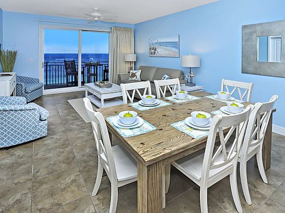 This Fully Furnished End Unit Features 3 Bedrooms,3 Full Baths, 9ft Ceilings, Granite Countertops, Fully furnished Kitchen with Breakfast Bar, Dining Room, Living Room, Large Terrace with Your Own Private Grill & Magnificent Views is Accessible off the Living Room and the Owner Suite, Complete Electronics Package including Flat Screen Televisions. and Can Easily Accommodate 10 People. Amenities Include: State-of-the-Art Fitness Center, Wine Bar, 2,000 sq. ft. Heated Tropical Pool and Whirlpool Spa, Poolside Umbrella and Beach Chair Service, Community Activity Room, Secure Parking. All This Located Only short distance to from Pier Park.All information is believed to be correct but should be verified by the Buyer.