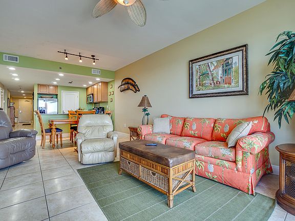 CURRENTLY UNDER CONTRACT, SELLER ACCEPTING BACKUP OFFERSThis one of a kind property conjures up images of sun-splashed days of swimming, biking, and relaxing. It lives like a beach house but comes with all the benefits of owning a condo. This property has been upgraded with stainless in the kitchen and hard surface flooring throughout and conveys fully furnishings and rental ready! Efficient floor-plan (1358sq.ft.; 2Bed, 3Bath + Bunkroom ) allows for fabulous Gulf and sunset views from balcony, living room, dining room, kitchen, & master suite providing the ultimate alfresco living and entertaining environment! Sunset views from the private balcony are perfect end to a sunny day and beginning to an exciting evening.