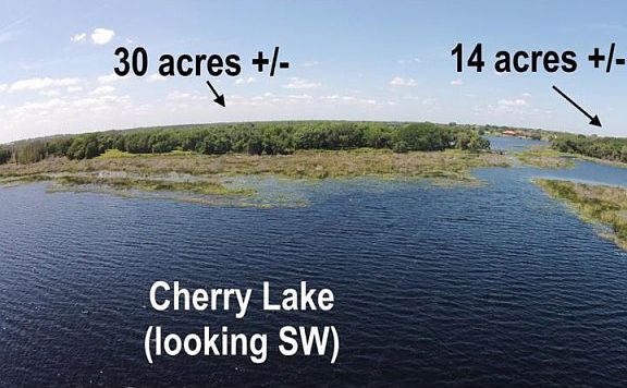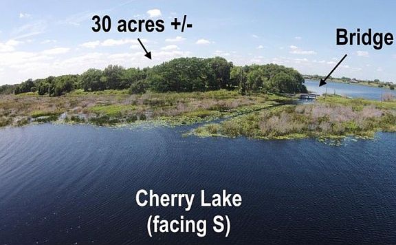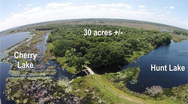 Private Island on the Clermont Chain of Lakes. Once-in-a-lifetime opportunity to secure your own private lakefront estate right here in Central Florida. The possibilities are endless. Immediately adjacent to City of Groveland but located in unincorporated Lake County, the property includes approximately 30 acres (MOL) high and dry on Hunt Island, plus an additional 14 acres (MOL) high and dry along Cherry Lake Road. Both tracts feature extensive frontage on the Clermont Chain. Private bridge access from Cherry Lake Road. 20 acre mature and productive citrus grove encircled by large, majestic 100+ year old oaks along the waterfront. The tract along Cherry Lake Road consists of stands of pine with oak and some citrus present as well. Both tracts feature gradual rises up from their water frontage and feature stunning waterfront vistas. Highest and best use for the property may be luxury waterfront home sites, or the property would make an ideal site for a private and secure waterfront family compound. The bridge to the island is owned and maintained by the Lake County Water Management Authority (with a sharing easement that transfers with the property) and is the location of the Cherry Lake flood control dam used to control water levels on the Clermont Chain, which makes this property unique in that it is the only property on the entire Chain from which both the north and south lakes can be accessed. Interested parties are encouraged to view aerial video tour. Call today for more information.