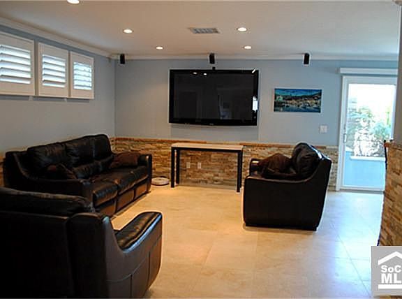 Totally remodeled light contemporary 5 bed/3 bath SFR with tons of travertine, stone, and granite. Recessed lighting, custom wood shutters throughout. Pre-wired for entertainment, security system, video, intercom. Large gourmet kitchen, American made Maple custom cabinets and appliances, GE mono gram built-in fridge, Viking cooktop, full granite splash, double dish washer. Master bedroom with small room, great for a closet, nursery, or office. Features large 228 sq foot rooftop patio with storage directly under deck, full length bar area, bathroom, and 60' plasma kiosk. Great for parties with ocean views. 2-car attached garage with double washer & gas dryer, contemporary roll-up double pain glass garage doors. Short walk to beach, restaurants, shops.
