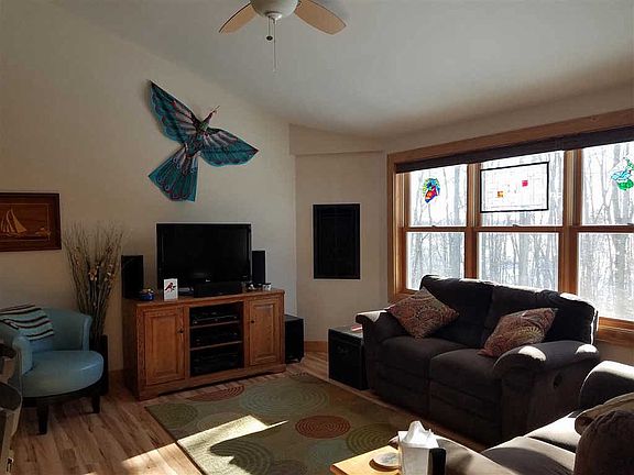 A beautiful, peaceful area on 8.5 acres of Shagbark Hickory trees on top of one of the highest ridges in the Driftless area of Wisconsin. A great weekend getaway or just a lovely place to live. Close to many trout streams, a short ride to either the Wisconsin or Mississippi Rivers and many parks. Wildlife abounds. The finishes in this house are top of the line! A kitchen that any top of the line chef would envy. House has in-floor heat and an on-demand water heater, water softener, top of the line appliances and an electrical plug every 4 feet! All doors are solid wood and the closets are many and very accommodating. Huge porch was remodeled in 2020 and is now screened in and has lights, a fan, speakers and two electrical outlets (not shown in photos). Has fiber optic (very fast) internet/wifi. 2 car garage is also heated and very spacious. There is also a small shed on the property. Home is listed at $375,000 (there was a mistake on the listing).