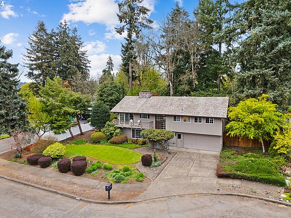 Meticulously maintained, classic split-level, mid-century home on private cul-de-sac with spacious main floor living, soaring tongue and groove vaulted ceilings, 3 fireplaces, on oversized 0.25 acre lot. Updated gourmet kitchen with built-in stainless steel appliances, custom maple cabinetry, granite slab countertops, and hardwood floors opens to dining room with corner gas fireplace plus access through slider to front balcony. A grand brick fireplace takes center stage in the living room and overlooks the private, fenced backyard, multi-level cedar deck, extensive white oak trees, and lush landscape. 3 bedrooms, 2 full bathrooms on the main floor with 1 additional bedroom / bonus room on lower. Family, laundry rooms, half bath and large storage space round out the lower floor. Oversized one-car garage with work bench and plenty of room for garden equipment, bikes, even a workout area. Original owner and first-time on the market! Centrally located and minutes from 99E (McLoughlin Blvd), I-205, and Hwy 224.