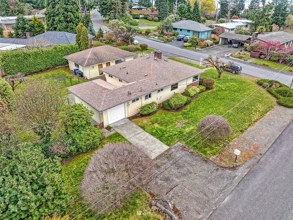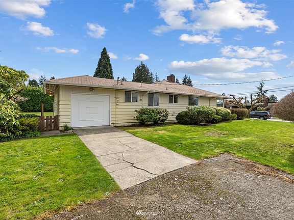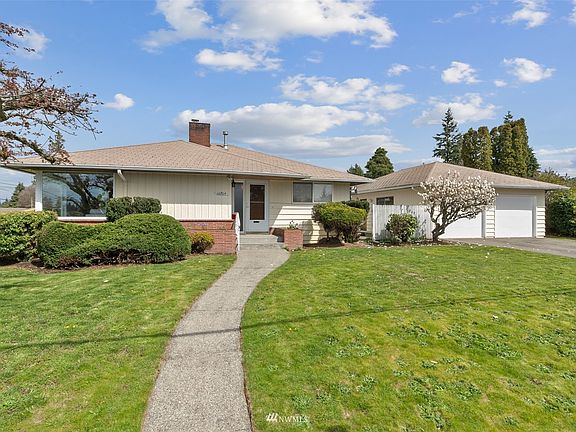 Expansive corner setting in heart of popular Gregory Heights. Classic mid-century rambler enjoys Puget Sound, mtn views and features two rare separate garages providing covered prkg for three vehicles. Lots of windows, floor-to-ceiling brick frplc, built-ins, wood finishes, and French doors complement the easy-flow light-filled rooms. Fabulous refinished hardwood floors, fresh updated bath are some of the improvements you'll find; all applcs stay. Decking, patios, garden trellis, fruit trees, backyard framed by greenery, mature landscaping create private outdoor spaces. Established scenic community; minutes to vibrant Olde Town Burien, amenities galore; close proximity to main commutes for easy access to downtown Seattle. Ready to close!