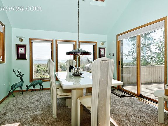 Waterfront real estate - East Marion - North Fork. This tri-level Contemporary with heated pool, tennis courts and its own beach and room make this one of the North Fork's most fantastic summer rentals. Other features include: open and spacious floor plan with many balconies for viewing the water, sunrises and the sunsets. Outdoor features include: patio and gazebo, outdoor entertainment area overlooking an inviting pool and landscaping. Indoor features include: living room with fireplace, formal dining room, 4+ bedrooms, 3 full baths, great room, game room, oversized 2-car garage, central air, central vacuum, all appliances, hot tub and too much to mention. Also for sale!!