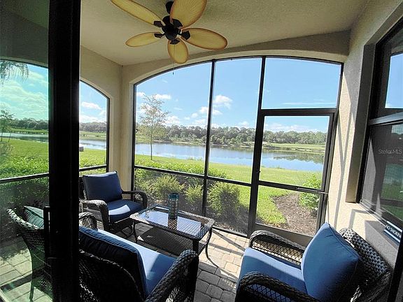 OPEN FOR JANUARY 2026 at $5,000.00. WELCOME to Lakewood Ranch! PET FRIENDLY. Stunning ground floor condo with amazing lake views. Beautiful and tastefully decorated Florida style, comfortable, bright, and peaceful settings. Master bedroom with King size bed and flat screen TV. Guest bedroom has a queen-sized bed. Family room with flat screen TV and extremely comfortable seating. Fantastic views from the balcony and most areas in the unit. Sit in your lanai and watch the golfers go by or relax with the peaceful and tranquil Florida settings of the late afternoon when you can feel in tune with Mother Nature and be grateful for such magnificent opportunity. Unit have a laundry closet with a washer and dryer for added convenience and, a storage room located outside in front of unit. Full membership transfers with fee of $642.00. Membership includes a 36 holes of championship golf (cart rental fees are the only thing you pay), lighted tennis courts, pickleball courts, resort style pools, spa, Clubhouse with fitness center, aerobics, yoga, massage parlor, restaurant/ bar with gourmet chef, golf pro-shop and much more. Great location close to University Parkway, downtown Bradenton, downtown Sarasota, Lakewood Ranch, UTC Mall, airport, beaches, I-75, Tampa, St. Pete. Small dog OK, no cats. Unbelievable unit...Luxury living at it best