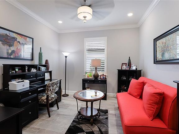 All the trappings, upgrades and condition of brand-new construction but without the wait and for substantially less cost! Not to mention no yard work ever! This mint-condition Summerwood model, located in Del Webb Lakewood Ranch, offers the near perfect floorplan. Two oversized bedrooms in a split layout bookend a generously sized home office which can be converted to a third bedroom easy as pie. Upgrades galore include plantation shutters throughout, the extended wrap-around lanai, matching tile floors, glass backsplash, crown molding and especially the over-sized lot with room to spare for your own private pool. But clear your calendar soon as you get settled in because Del Webb will keep you busy! Pickleball, shuffleboard, bocce ball, tennis, billiards, massive fitness center, resort pool & spa, on site restaurant and bar... you name it, Del Webb has it once inside those gates. All of this centrally located around the 28,000 sf clubhouse complete with your own full time Activities Director ensuring there is always something happening for everyone. This is your time, and this is your home.