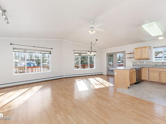 UNBEATABLE LOCATION! Close to shopping, restaurants, and a quick commute to JBER! This light and bright home is perfect for entertaining with an open floor plan and vaulted ceilings. Updated kitchen includes stainless steel appliances and solid surface counter-tops. The backyard is privacy-fenced and spacious for summer BBQ's! Enjoy the oversized two-car garage and charming neighborhood. The large shed stays with the property and the double-gate in the backyard makes it easy to store toys! The washer and dryer also stay. Enjoy the gas fireplace and the special touches, such as the crown molding, tile backsplash in the kitchen, and all the extra storage space this home has to offer. This property has been *professionally cleaned* for the new owners!