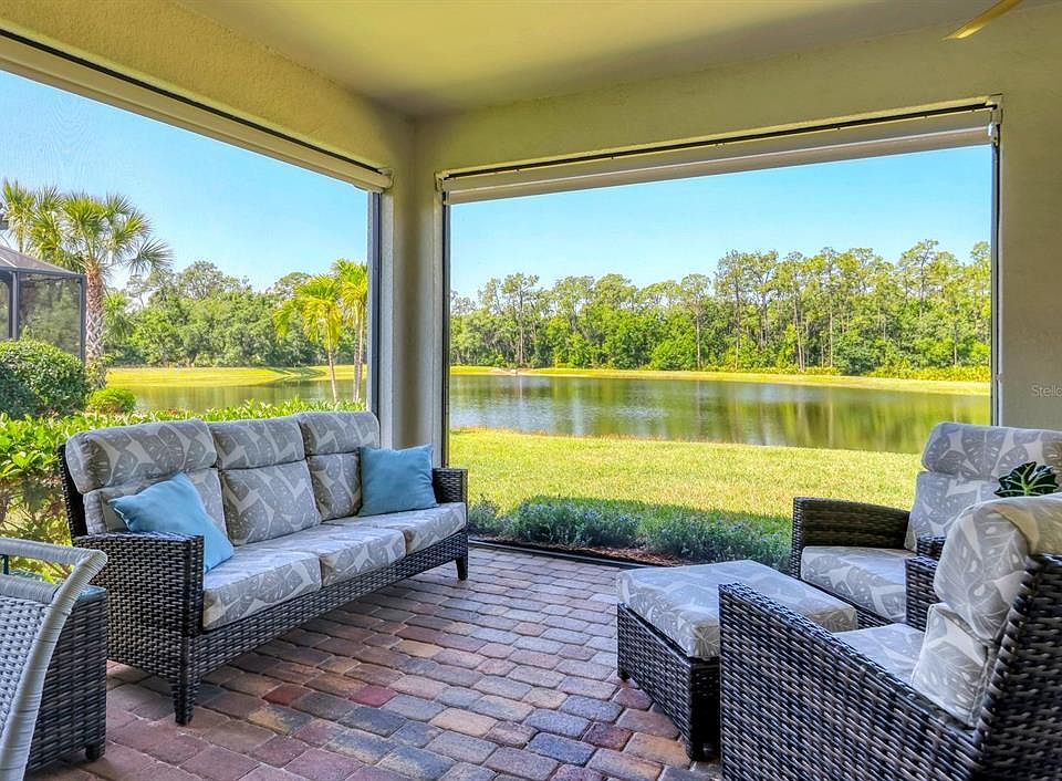 Incredible value & not to be missed for this rare and amazing, private Pond + Preserve view Summerwood home. Location! Location - endless nature views, no neighbors behind you provides a feeling of seclusion while you are loving the active 55+ Del Webb lifestyle. Discover the welcoming charm of this sunny home with amazing lush waterviews as you step inside. Two beds, two baths, and a versatile office/den with French doors, plus a spacious 2-car garage with extra space for a golf cart, perfect for exploring the lively community. Just beyond the welcoming entry, your eyes will be captivated by the panoramic, serene views of the pond and private nature preserve. The open floor plan seamlessly connects the Greatroom and kitchen with sliding zero corner patio doors leading to the spacious lanai, offering a peaceful retreat and stunning sunsets. Indulge your culinary passions in the gourmet kitchen equipped with stainless steel appliances, including a modern natural gas cooktop, wall oven and microwave. A sizable center island with a breakfast bar, stylish tile backsplash, exhaust hood, and a convenient walk-in pantry. This home boasts modern amenities for luxury living. Crown moldings and extended height doors elevate the elegance. Contemporary wood plank-look porcelain tile flooring flows throughout the majority of the living space. Stay comfortable with strategically placed ceiling fans and pendant lighting in the kitchen. Storage -Yes! Recently added Custom walk-in closet organizers in Owner’s suite, spacious walk-in pantryand a custom built-in drop zone upon entering through the garage. Dedicated laundry room with storage cabinets and utility sink ensures practical organization. Enjoy added comfort and privacy with two new sunscreen shades on the lanai and a front door screen enclosure. Rest assured with recently serviced HVAC and pest control systems under maintenance agreements. Life is magical in Del Webb where you will have no shortage of friends and social opportunities as you wish! A full-time lifestyle concierge presents that “something for everyone” experience. Enjoy the incredible amenity center and endless recreational opportunities including 6 tennis courts, 8 pickle ball courts, 4 bocce ball courts, state-of-the art fitness center, group fitness classes, resort-style pool with lap pool, spa, on-site restaurant and bar ($500 minimum food and beverage annually), entertainment, a satellite pool and and more social activities, clubs and events to keep you entertained along with a full time Lifestyle Director. Great location with easy access to Sarasota, Bradenton, Tampa, St Petersburg, the Gulf Beaches and two area airports. More shopping and restaurants than you can imagine with the UTC mega shopping area close by along with many other amenities and cultural interests. This home has been well cared for and is ready for new owners. Del Webb is calling you home! This home and location is a must see! .