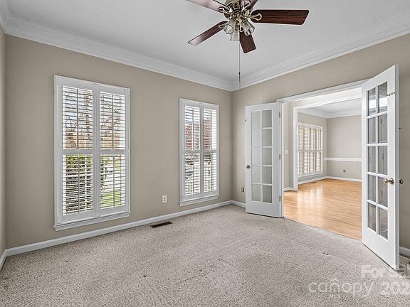 Large home with lots of space in a low-traffic cul-de-sac location with a big, level backyard (storage building remains), almost 1/3 acre lot. Excellent location close to shopping, restaurants, and conveniences in a sought-after school district. Front office with French doors and a main level bedroom next to a full bath that would also make a great second office, study room, or guest room. Four more bedrooms plus a pool table size bonus room on the second floor. King size primary suite with vaulted bathroom and spacious closet featuring wooden shelves. Freshly painted walls, ceilings, trim, and doors... it's ready for you and vacant, so you can move in any time. Plantation shutters, lots of great natural light, pantry closet with wood shelving, granite countertops, slate backsplash, kitchen fridge remains. Pool community with low HOA dues, only $440 per year.
