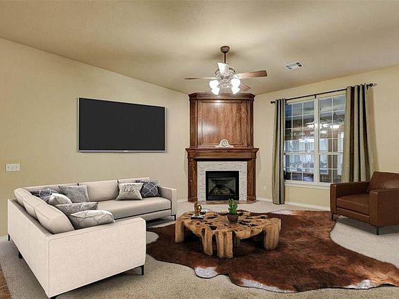 Upgrades abound: a resurfaced fireplace surround, updated cabinet hardware & a refreshed master bath tile. Freshly painted exterior (2024), garage door opener, upgraded sprinkler control panel + drip lines to pots, & a jumbo 611 sq ft 2½-car garage- above-ground storm shelter. The Class 4 impact-resistant roof (2024)