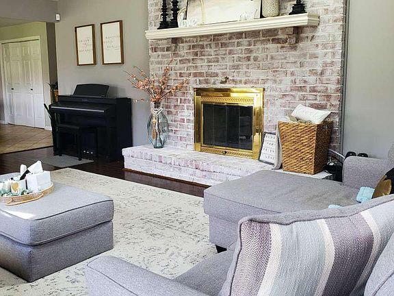 - Fireplace features: Brick, Wood Burning, Glass Doors