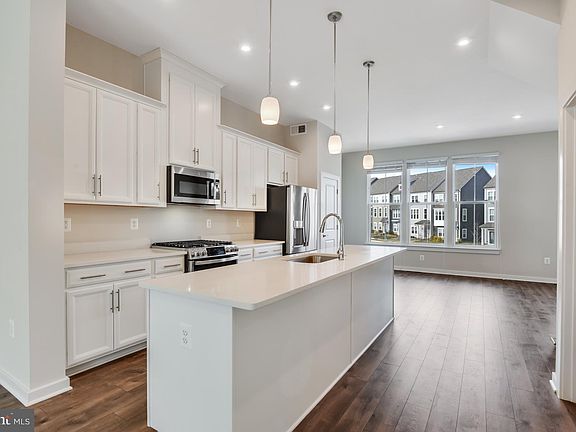 Beautiful, three-level townhome in Potomac Shores! The main level features elegant wood flooring and a gourmet kitchen with stainless steel appliances, a gas range, and an oversized island, perfect for cooking and gathering. A separate dining area and spacious family room lead to a rear Trex deck, ideal for relaxing outdoors. Upstairs, discover three well-appointed bedrooms, including a primary suite with a walk-in closet and an ensuite bathroom featuring a tiled shower and dual vanities. Two additional bedrooms share a hallway bathroom, and a conveniently located laundry area completes this floor. The lower level boasts a versatile rec room with wood flooring and walkout access to the backyard, plus a full bathroom with a tub-shower combo. Additional features include a two-car garage and driveway parking, along with an available alarm system for buyer use. HOA fees include WiFi and trash service. The resort like community settled along the shoreline of the Potomac River. Walking trails, golf course, state of the art fitness center, outdoor swimming pools, a kayak/canoe launch, clubhouse with full kitchen, community garden, tot lots, an Elementary, Middle and High school, and soon the Virginia Railway Express!
