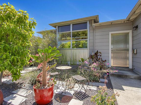 This sun-filled, White Oaks home has a great Zen feeling. Walk into the courtyard entry and find a beautiful patio with a fire pit and ample room to BBQ and dine. This house works perfectly for indoor-outdoor living and entertaining. The kitchen has a modern feel with a counter that can be a breakfast bar. The open floor plan of living room, dining room and kitchen creates an inviting and warm environment for family and friends. The living room was enhanced with a larger-than-normal skylight that makes the ceiling soar. This home has beautiful French doors and hardwood floors. The dining area can accommodate a large table for your family members or guests. The bedrooms are large. The new contemporary master bedroom is bathed in light, features a landing that works perfectly as a home office, and opens onto a bamboo garden retreat. One special feature is that the back yard has two private outdoor tubs. The property is in walking distance to the downtown, schools and Burton Park.