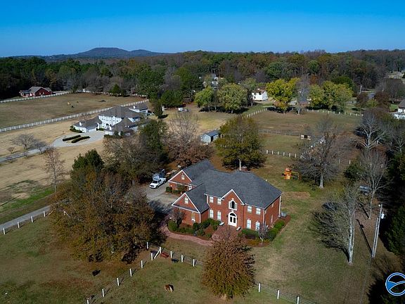 MINI FARM and city convenience! Located minutes from Research Park and Redstone Arsenal, EQUESTRIAN ESTATE home, FUNCTIONAL FLOOR PLAN on 4.6 acres. Grand Foyer into Living Room features natural light, wood floors, gas burning fireplace, and double French doors onto the 30x12 covered deck. Wonderfully appointed farmhouse kitchen with updated fixtures, granite, backsplash and oversized pantry. Master bedroom features updated bath with double vanity, whirpool tub, & tiled shower. Large upstairs bedrooms with BONUS room perfect for theatre/playroom! ABUNDANT CLOSET SPACE throughout. Stunning outdoor VIEWS & entertaining spaces. Over 1500 sqft detached garage with three garage & upstairs bonus.