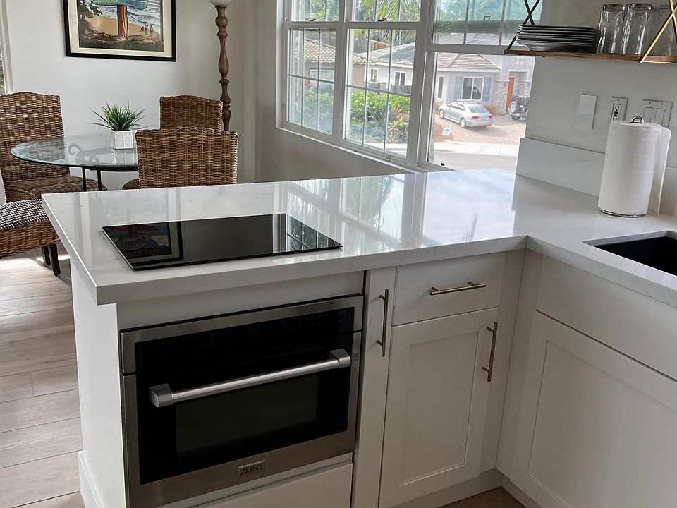 Bright and open renovated 1 bedroom 1 bath ADU above garage 1 mile from beach in Olde Carlsbad! Quiet neighborhood. Directv, Internet, Water, trash, electricity, and biweekly housecleaner included! PROPERTY INFORMATION: Recently renovated with new paint, floors, kitchen, fixtures, and addition of private in unit washer/dryer. Surrounding windows with calm ocean breezes. Quiet neighborhood with great location close to beach, downtown, and freeway. New stainless steel refrigerator, microwave(doubles as convection oven), induction cooktop and quartz countertops. Furnished, open concept living/dining space with eat-in kitchen island. Separated bedroom and bath. Private outside entrance with parking off street in front of unit. No pets allowed. This is a no smoking of any kind whether indoor or outdoor location. No RV type vehicle storage. 12 month lease, looking for a long-term tenant. First & cleaning deposit due upon signing lease agreement. Owner pays for water, electricity, heat, internet, DIRECTV and biweekly cleaner