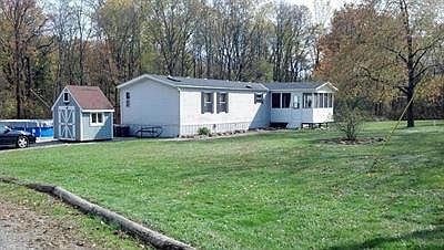 Immaculate condition single wide on 6+acres back a long lane with screened porch on front for enjoying those beautiful sunsets, mudroom addition exits to deck on rear overlooking above ground pool (sellers will remove if desired) detached 2-car garage and trails through wooded acreage. Home has FHA required foundation.
