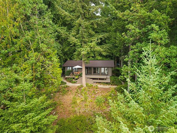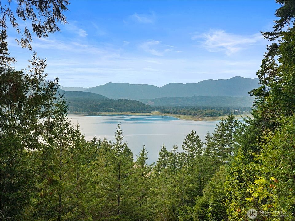 Whether you're looking for a hide-out, a writers retreat or year round nest, this cozy home perched among the firs delivers! With a stunning view of East Quilcene Bay and the Olympic-Quilcene Range perfectly framed out your back door, this home is situated on one of only a handful of West-facing properties on the peninsula with both water and mountain views. Watch the tide come and go from the bay, or while away the evening viewing the sun go down over the Olympics. The tidy 2 bed 1 bath home sits atop 5 acres and features a metal roof, classic Rumford fireplace and a wall of glass opening up to a beautiful deck. Privacy and silence assured! Massive trees and a lush private drive will welcome you home to this quintessential PNW property