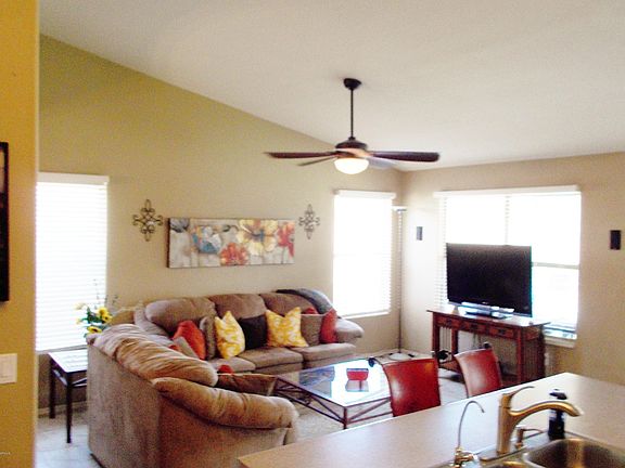 Well maintained move-in ready single-level home in Gilbert Ranch. Stainless steel appliances, granite countertops in bathrooms, and upgraded flooring throughout (wood floors in the living/dining rooms, hallways and neutral 18'' porcelain tile in the family room, kitchen, den, laundry and bathrooms). 3 bedroom + den which could easily be converted to a 4th bdr. Vaulted ceilings and desirable open floor plan. Professionally landscaped yards. N/S exposure. RV gate w/ side slab. Great location in middle of family neighborhood and minutes from San Tan Mall and several shopping centers as well as San Tan 202 and U.S. 60 freeways. Walking paths and parks. Priced to sell! This house has it all and will go fast! Flat screen T.V.s do not convey. Traditional sale. Buyer to verify all facts/figures.
