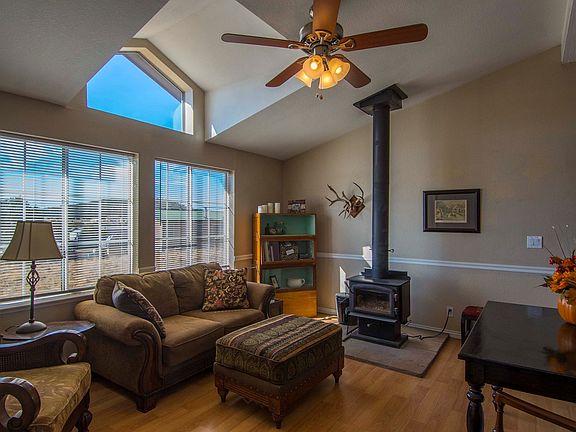 Country home on 1+ acres, fully fenced, close to National Forest, 3 bdrms, 2 baths and 10x30 workshop. On Grid Power. Beautiful views, privacy. Cozy wood-burning stove, laminate floors and carpet in the bedrooms. Two living/family room spaces plus dining area. Barstool setup at the kitchen counter. Kitchen is open, lots of cupboards, dishwasher, refrig, and step-in pantry. Separate laundry room includes the washer/dryer. Back door leads to the workshop...perfect to leave the dirty clothes at the end of the day. Entire property is fenced, plus there is additional fencing around the front yard. Plenty of parking on the cindered driveway. Water tank is buried (2100 gal). Only 5 miles north of Williams for easy access to shopping.